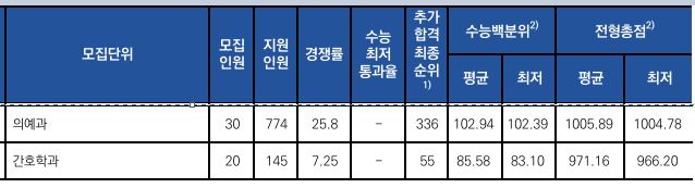 5. 순천향대학교 2025 정시 다군 의예과 간호학과 일반학생전형 입결
