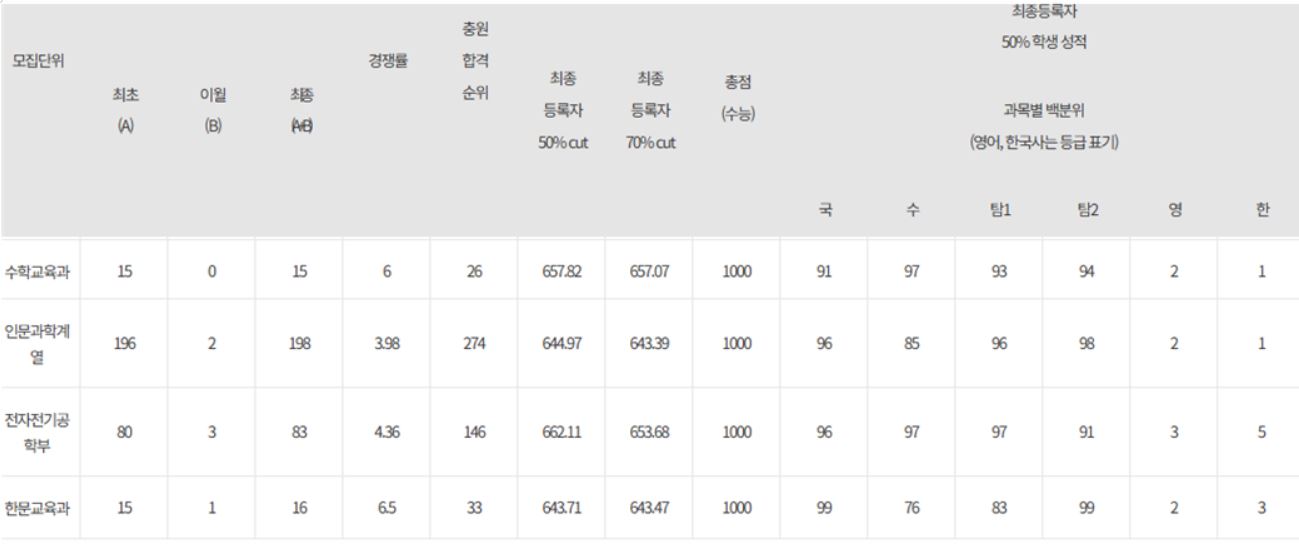 5. 성균관대 2025 정시 나군 입결 : 수학교육 인문과학계열 전자전기공학부 한문교육
