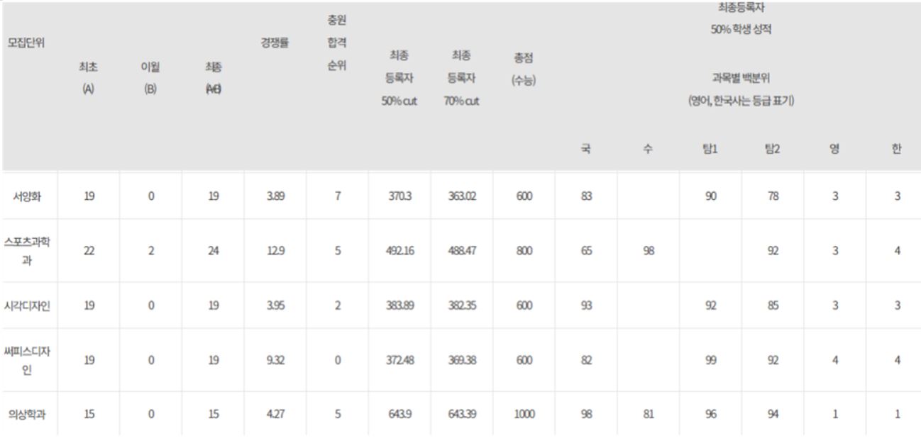 * 성균관대 입결 자료를 보면서 좀 짜증 나고 실망스럽습니다. 일단 학교 홈페이지 공개 자료는 충원율 투성이고, 어디가 자료는 단과대학 표기나 정렬이 없어서 좀 답답합니다. 어디가 자료 자체가 보기 힘든 구조이긴 합니다. 일부러 저렇게 편집하나 싶습니다. 글자도 작은데 다운로드할 수도 없습니다. 불편합니다. 아무튼 수능위주전형 입결 자료는 아래와 같습니다.